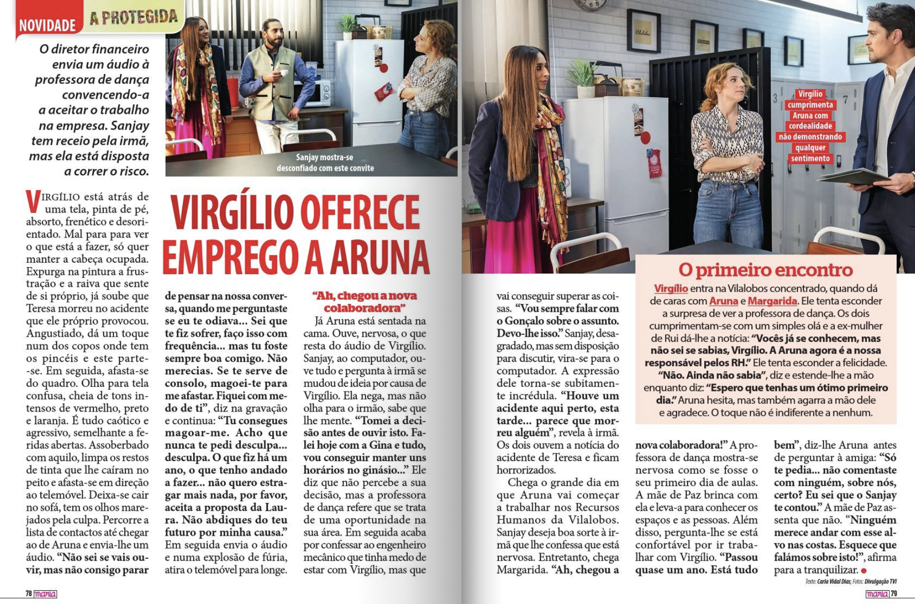 O grande dia chega e Aruna inicia funções nos Recursos Humanos da Vilalobos. Nervosa, é recebida por Margarida, que a apresenta aos colegas. Pouco depois, dá-se o momento inesperado: Virgílio entra na empresa e fica surpreendido ao vê-la ali. Tentando disfarçar, cumprimenta-a com cordialidade: “Espero que tenhas um ótimo primeiro dia.” O aperto de mão entre ambos revela que o reencontro não lhes é indiferente.